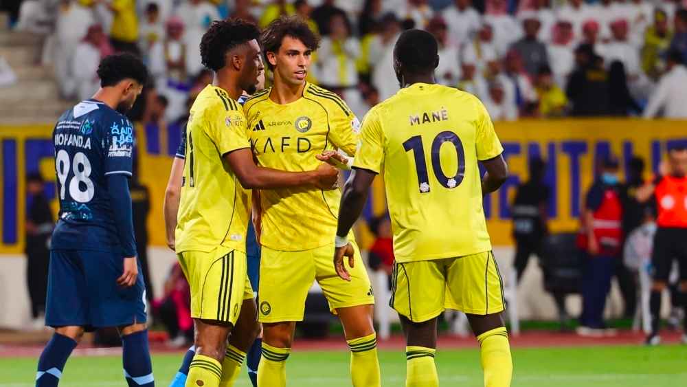 ومع استمرار الضغط النصراوي، عزز المدافع الإسباني إنييغو مارتينيز النتيجة بالهدف الثاني من رأسية متقنة في الدقيقة 24، قبل أن يضيف عبد الإله العمري الهدف الثالث بالدقيقة 26 من رأسية أخرى، وكلا الهدفين جاءا بصناعة "سحرية" من البرتغالي المتألق جواو فيليكس.