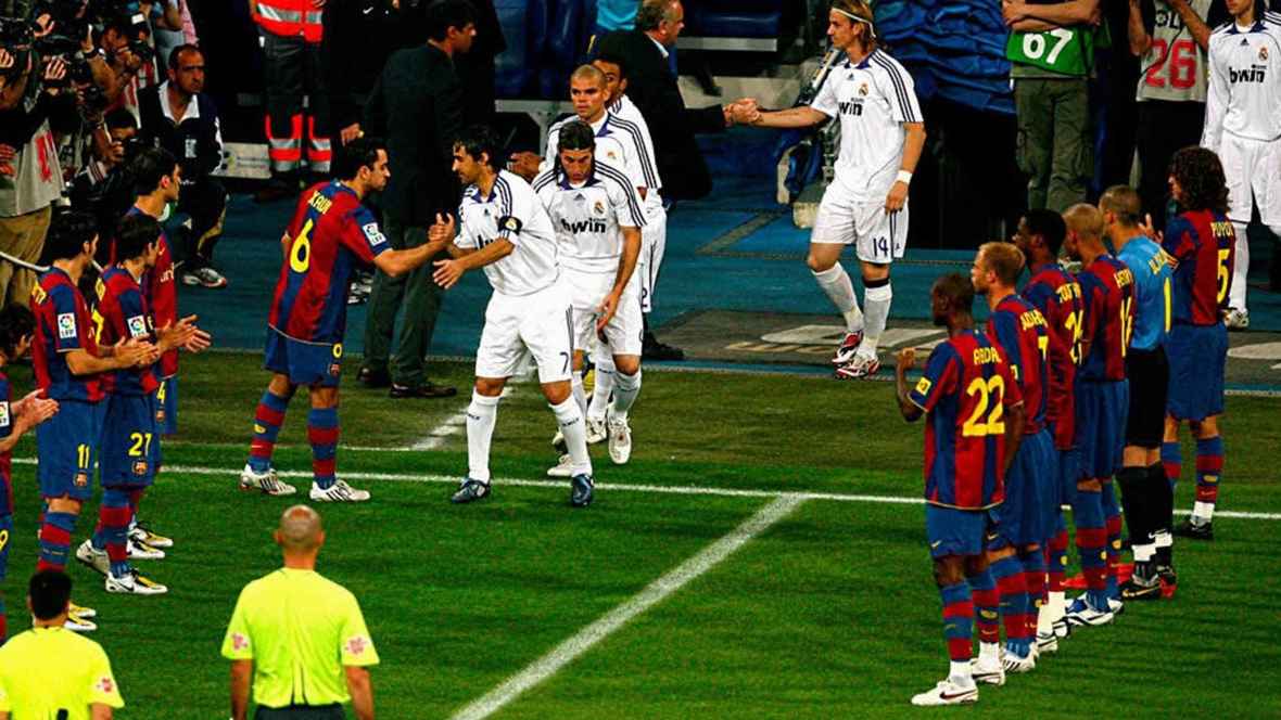 موسم 2007-2008: الممر الأشهر في التاريخ الحديث، حيث اصطف لاعبو برشلونة في "البرنابيو" لتحية الريال (وانتهى اللقاء باكتساح ملكي 4-1).