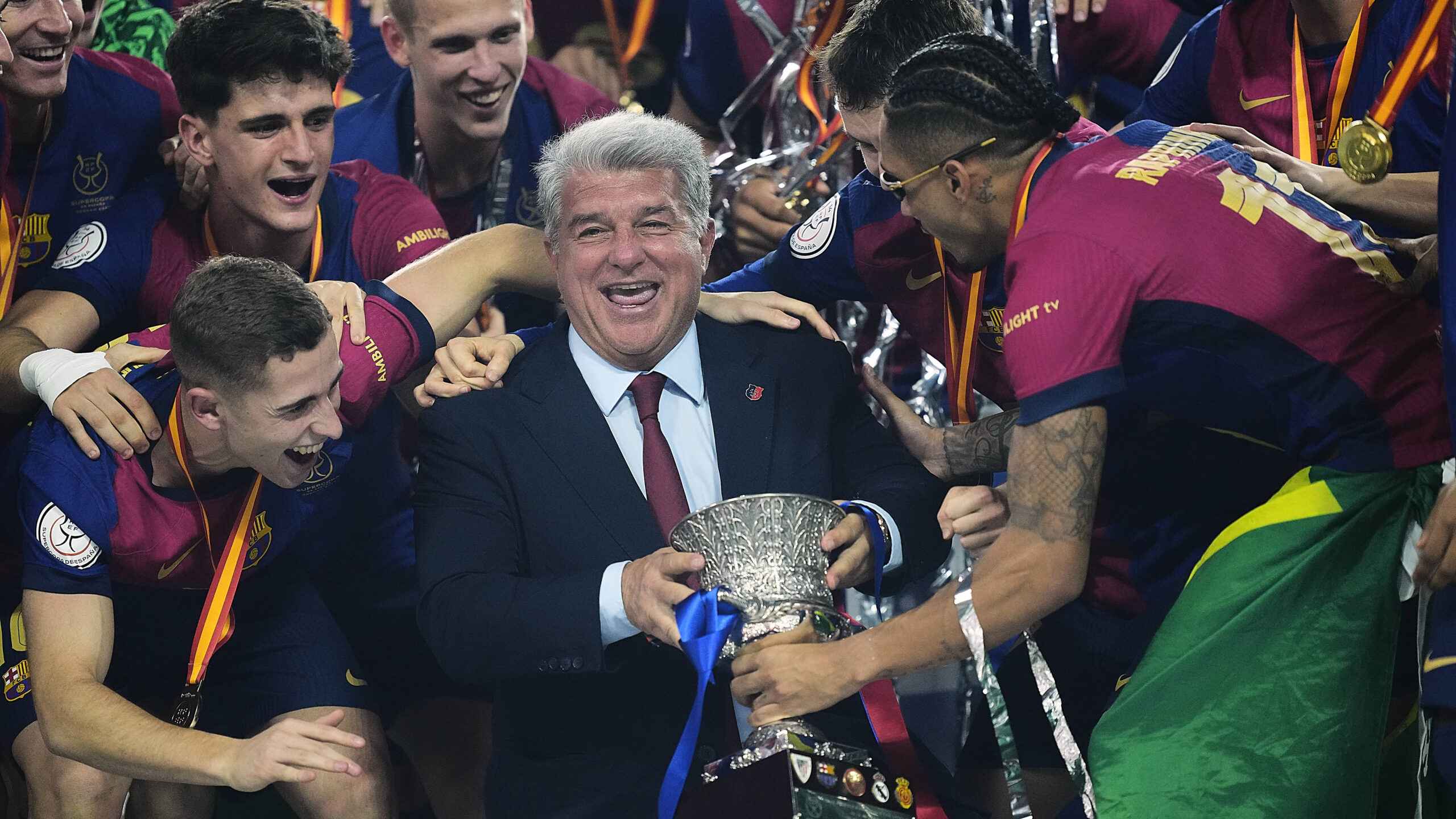 شهد ملعب الملك عبد الله بالرياض نهائيًا حافلًا، حيث تابع رئيس نادي برشلونة، جوان لابورتا، بفخر تتويج فريقه باللقب السادس عشر لكأس السوبر الإسباني، في مواجهة متوترة مع ريال مدريد.