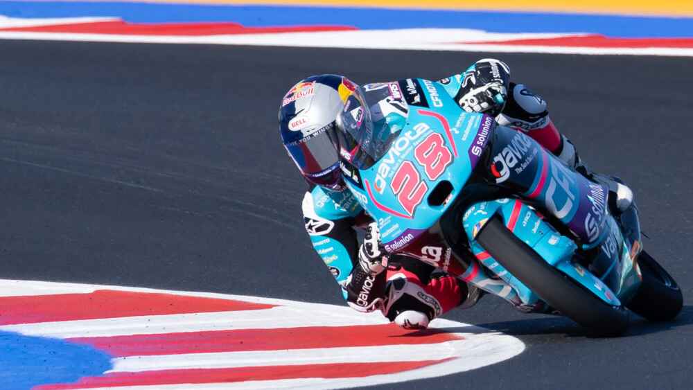 تقدم المتسابق ماكسيمو كويليس (CFMoto) السبت في الجلسة التدريبية الثانية والأخيرة قبل موسم بطولة العالم للموتو3 على حلبة خيريز-أنخيل نييتو، مسجلاً أفضل زمن بلغ 1:43.930.