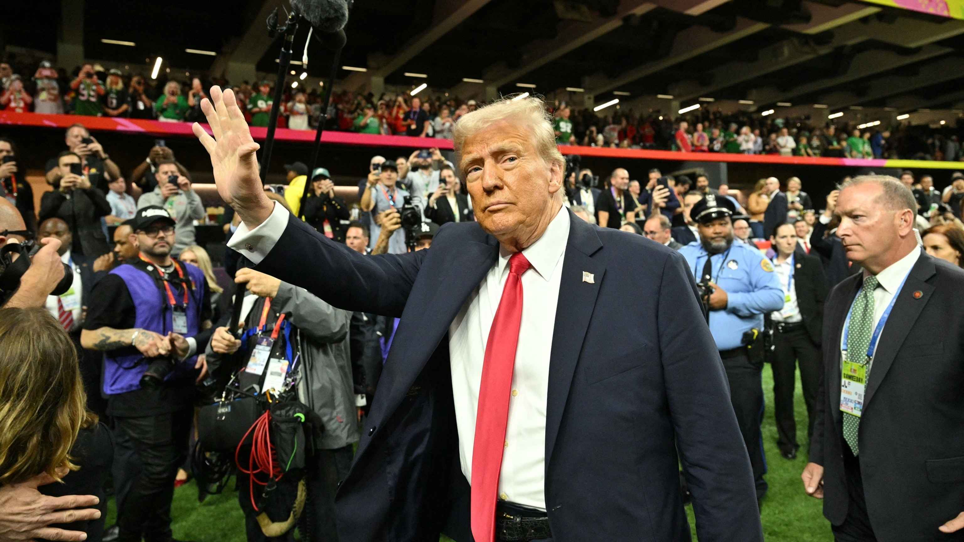 أصبح دونالد ترامب أول رئيس في منصبه يحضر أكبر مباراة في أمريكا العام الماضي عندما شاهد فريق فيلادلفيا إيجلز يمنع فريق كانساس سيتي تشيفز من تحقيق ثلاثية متتالية في نيو أورليانز.